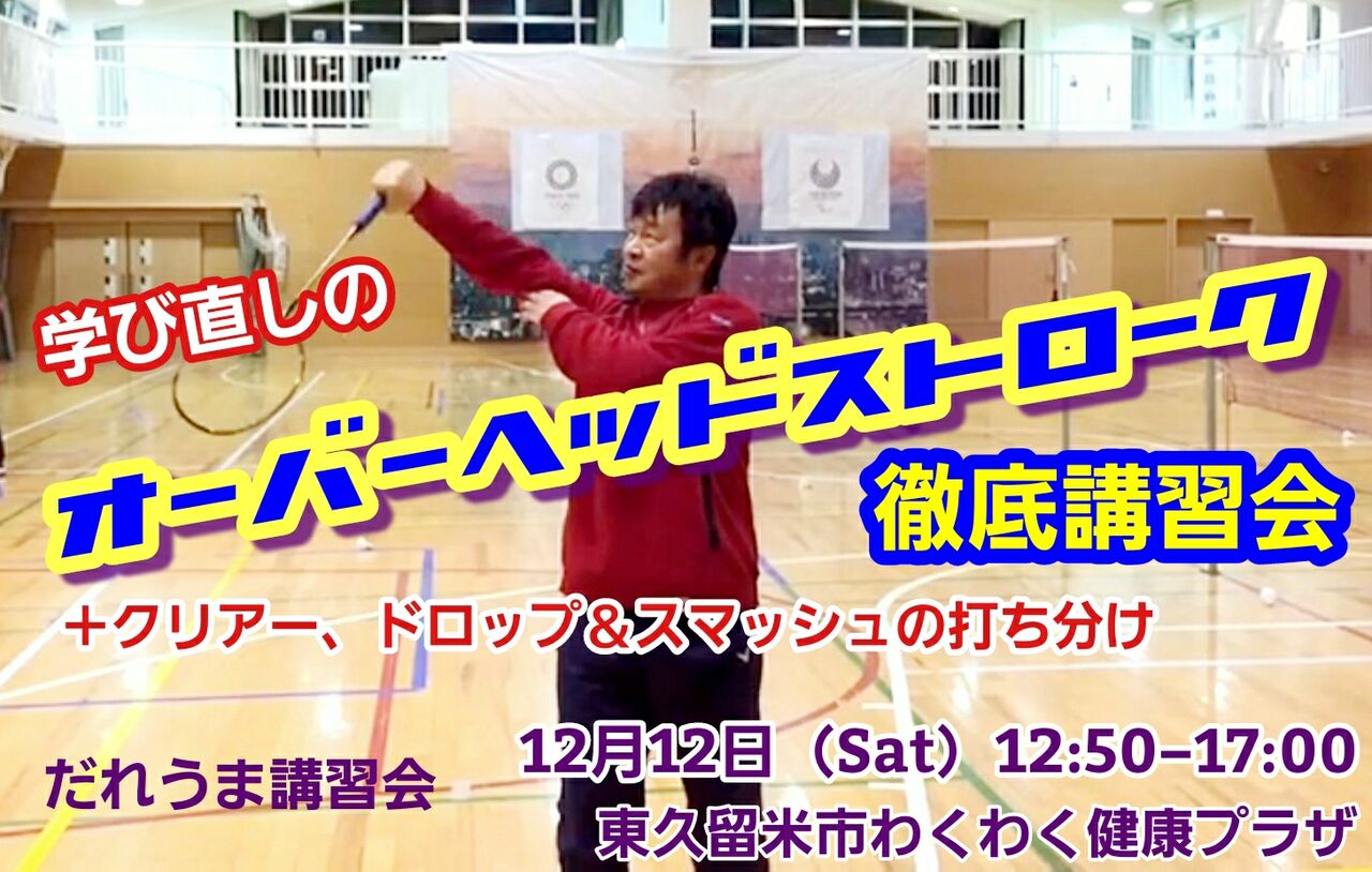 【学び直しの『オーバーヘッドストローク徹底講習会』(+クリアー、ドロップ&スマッシュの打ち分け)】参加者募集(12月12日(土))